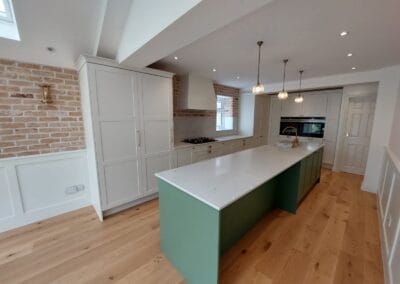 At Essex Home Improvements we take care of your kitchen refurbishment from start to finish: from the initial planning to the install, we do it all. Some companies will only want to fit the kitchen. We provide all the demolition work, removal of old units, room reconfiguration, electrical and plumbing work, plastering and decorating along with flooring and skirting boards.